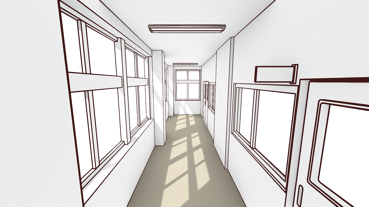 2023年7月29日に完成・公開した作品です。学校の廊下をBlenderでモデリングしました。