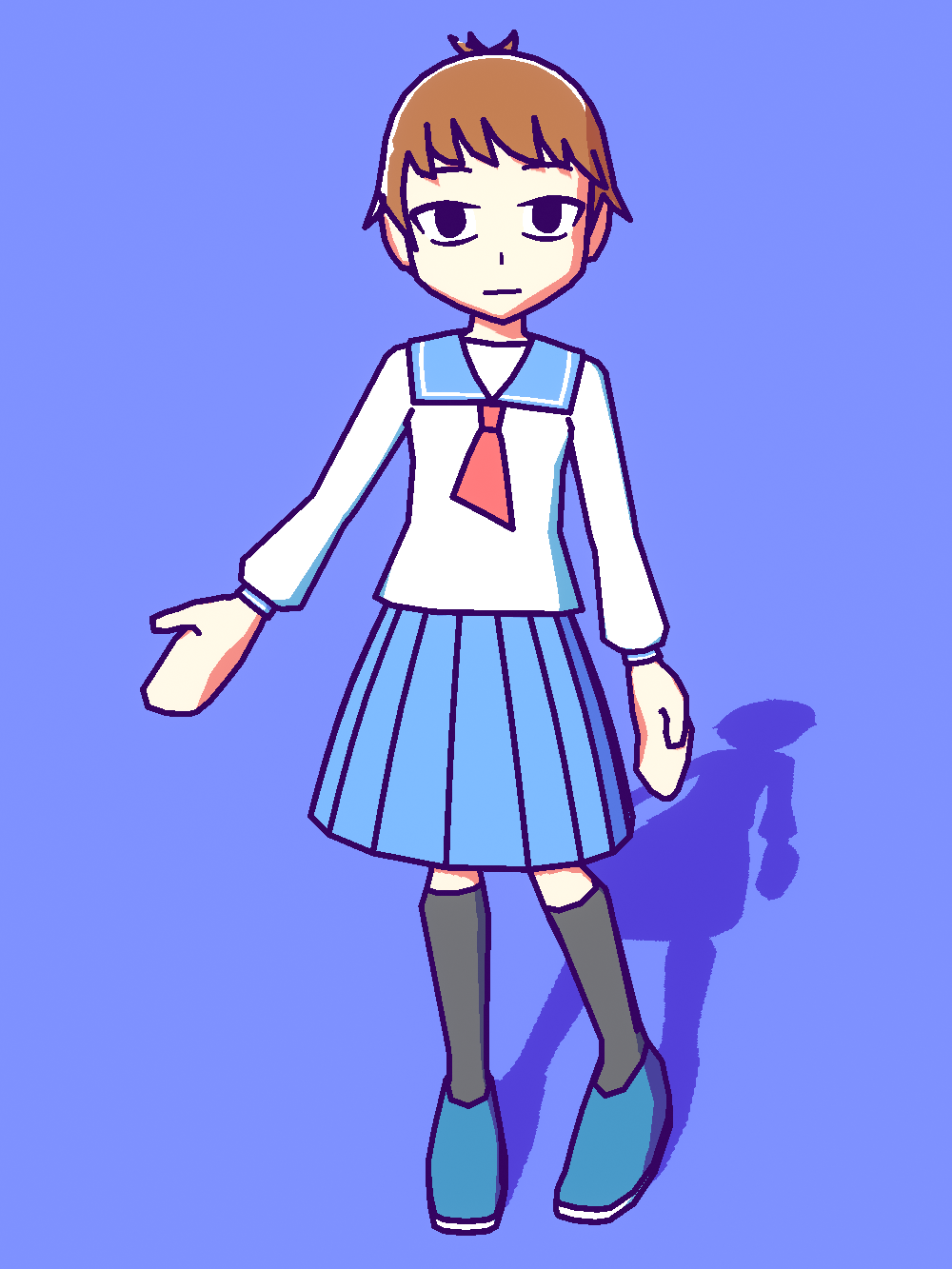 今までキャラモデルを1つ完成させるのに1ヶ月くらいかかっていたのですが、このモデルは1週間ほどで完成しました。ポリゴンが少ないので修正も簡単ですし、今まで作ってきたキャラモデルの中で一番作ってて楽しかったかもしれません。