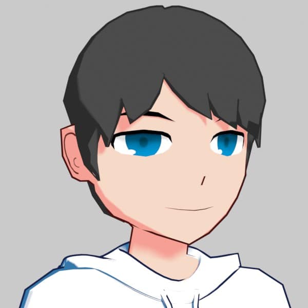 最初はルミ子や泉研(チャージマン研)みたいに顔のパーツはテクスチャで表現する予定だったのだが、「静止画ならともかく、アニメーションで表情を変化させたい時にこの方法だと面倒くさい」と思ったので結局ポリゴンで作る従来の方法にした。